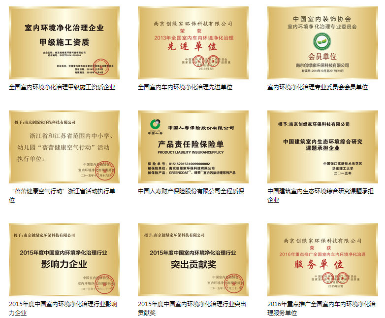 品牌不僅被央視納為宣傳推薦品牌,更是在2012年獲得了中國(guó)室內(nèi)環(huán)保凈化產(chǎn)品十佳品牌,同時(shí),創(chuàng)綠家被評(píng)為中國(guó)中輕質(zhì)量信譽(yù)雙保證重點(diǎn)推薦單位,室內(nèi)環(huán)境檢驗(yàn)治理達(dá)標(biāo)單位,并擁有室內(nèi)環(huán)境污染治理證書,被評(píng)為全國(guó)環(huán)保行業(yè)質(zhì)量放心、消費(fèi)者***品牌!